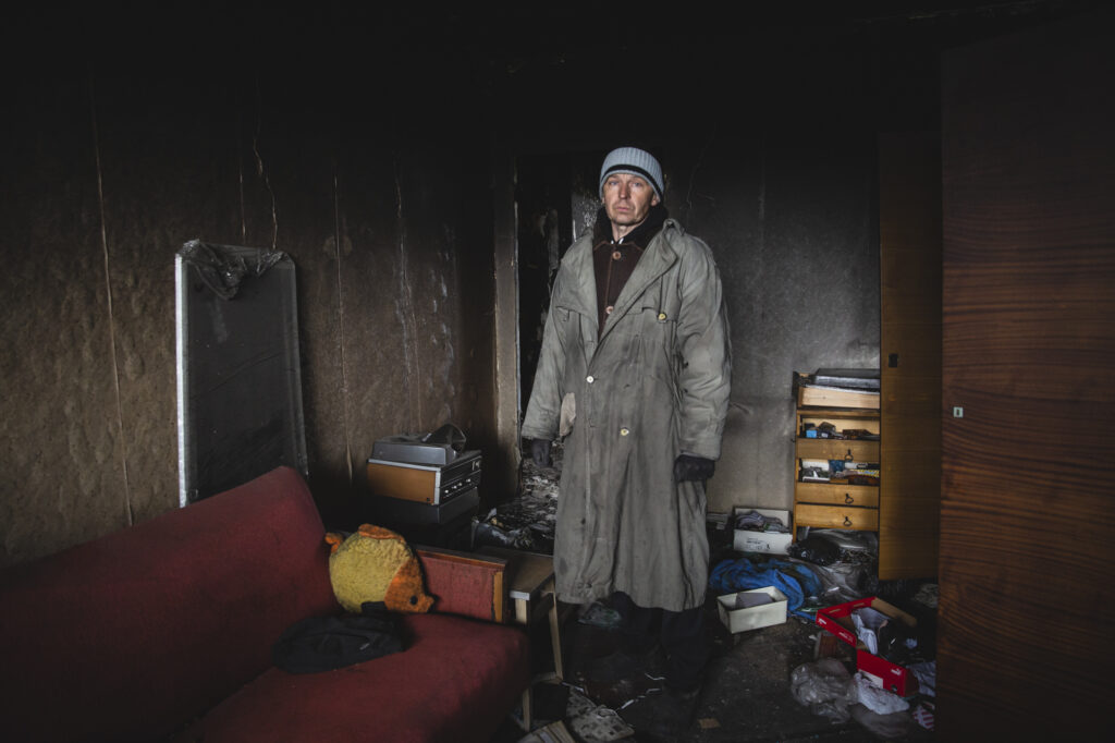Теперь синий «фольксваген», весь в дырах и с заделанными фольгой окнами, снова припаркован во дворе. Дмитрий вывозит на нем то, что уцелело в квартире, где он прожил 38 лет.