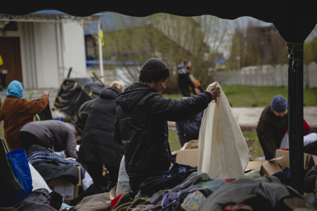 «Нам не дозволялось выходить никуда, расстрел на месте. Ходили по домам. Шукали оружие. Бандеровцев шукали», — вспоминает, посмеиваясь, 63-летняя пенсионерка Анна, которая приехала за гуманитаркой на велосипеде. Это сейчас основное средство передвижения в Бородянке, бензина ни у кого нет. Анна знает, что в центре поселка убили ее соседа — 42-летнего Андрея Быкова.