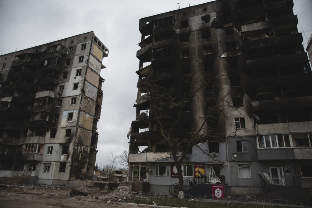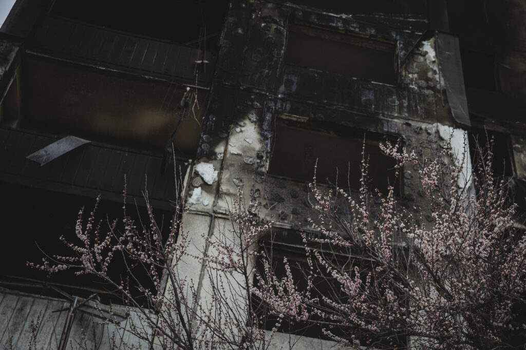На улицах Бородянки цветут абрикосовые деревья и яблони. Усеянные розовыми цветами ветки выделяются на фоне двух почерневших высоток на Центральной улице. На самом деле это один дом — просто средней секции у него больше нет: 2 марта ее разрушила ракета, выпущенная из российского самолета.