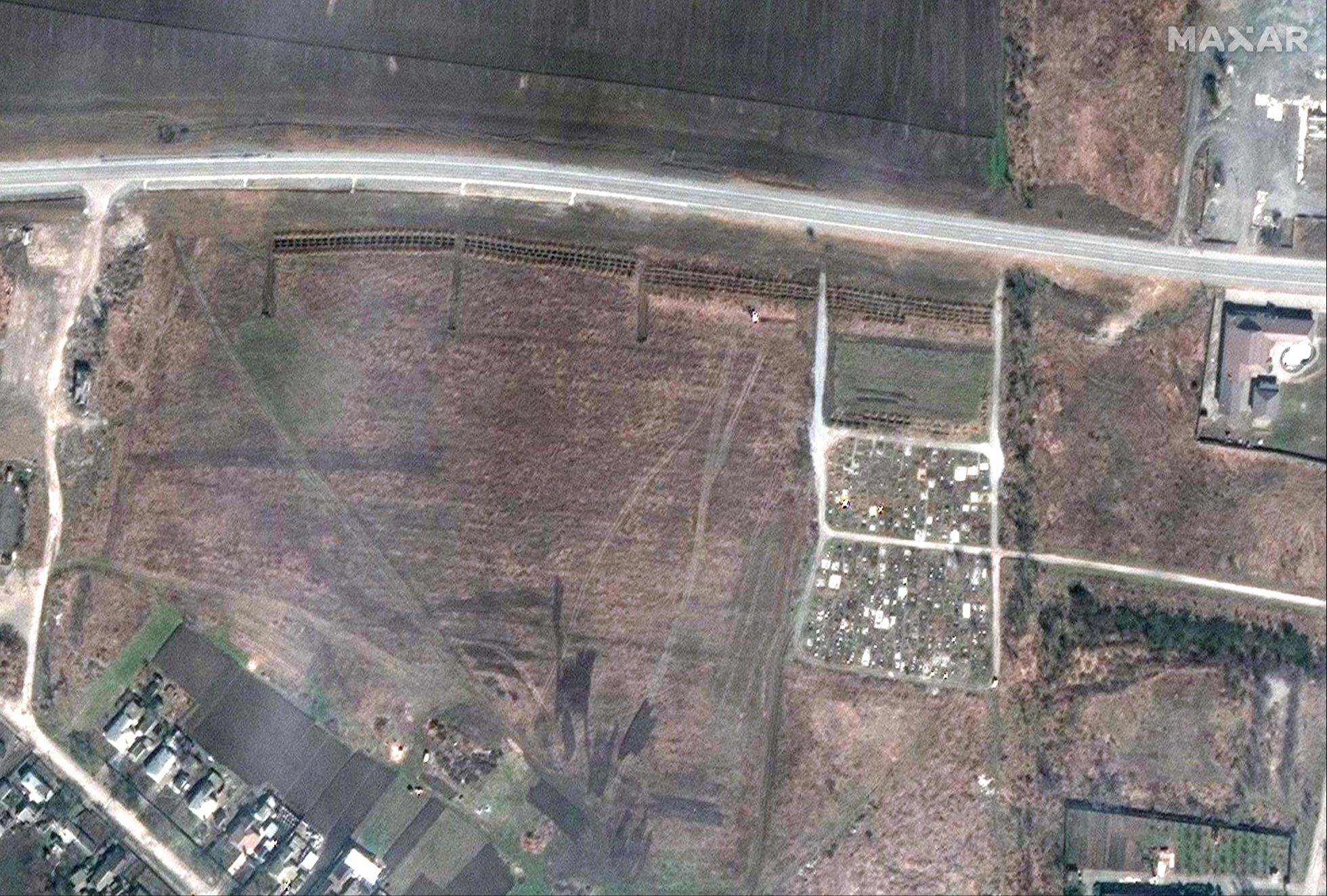 По оценке The New York Times, в месте массового захоронения в поселке Мангуш под Мариуполем, судя по спутниковым снимкам, вырыто около 300 ям. Ямы появились в течение двух недель в марте-апреле, когда российские войска контролировали эту территорию.