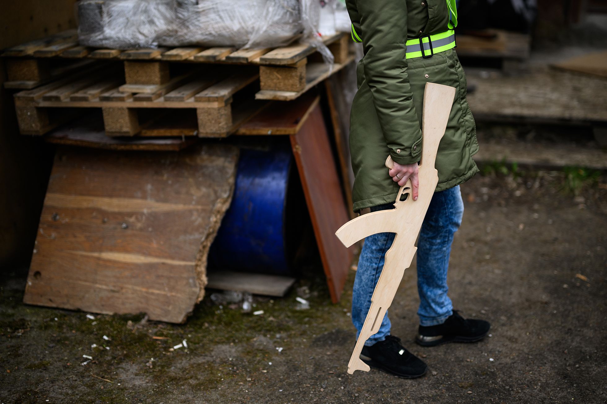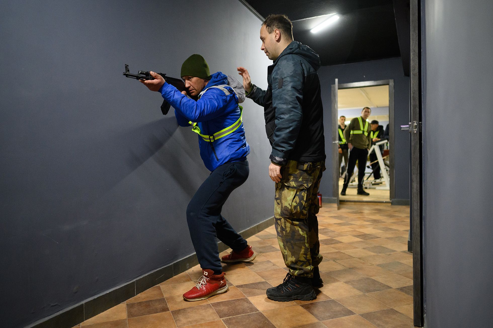 Жители Украины проходят боевую подготовку у чешского военного инструктора Петра Масло (на первом фото в центре). Тренировки проходят в бывшем спортзале и возле него.