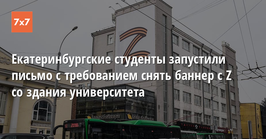 Екатеринбургские студенты запустили письмо с требованием снять баннер с Z со здания университета