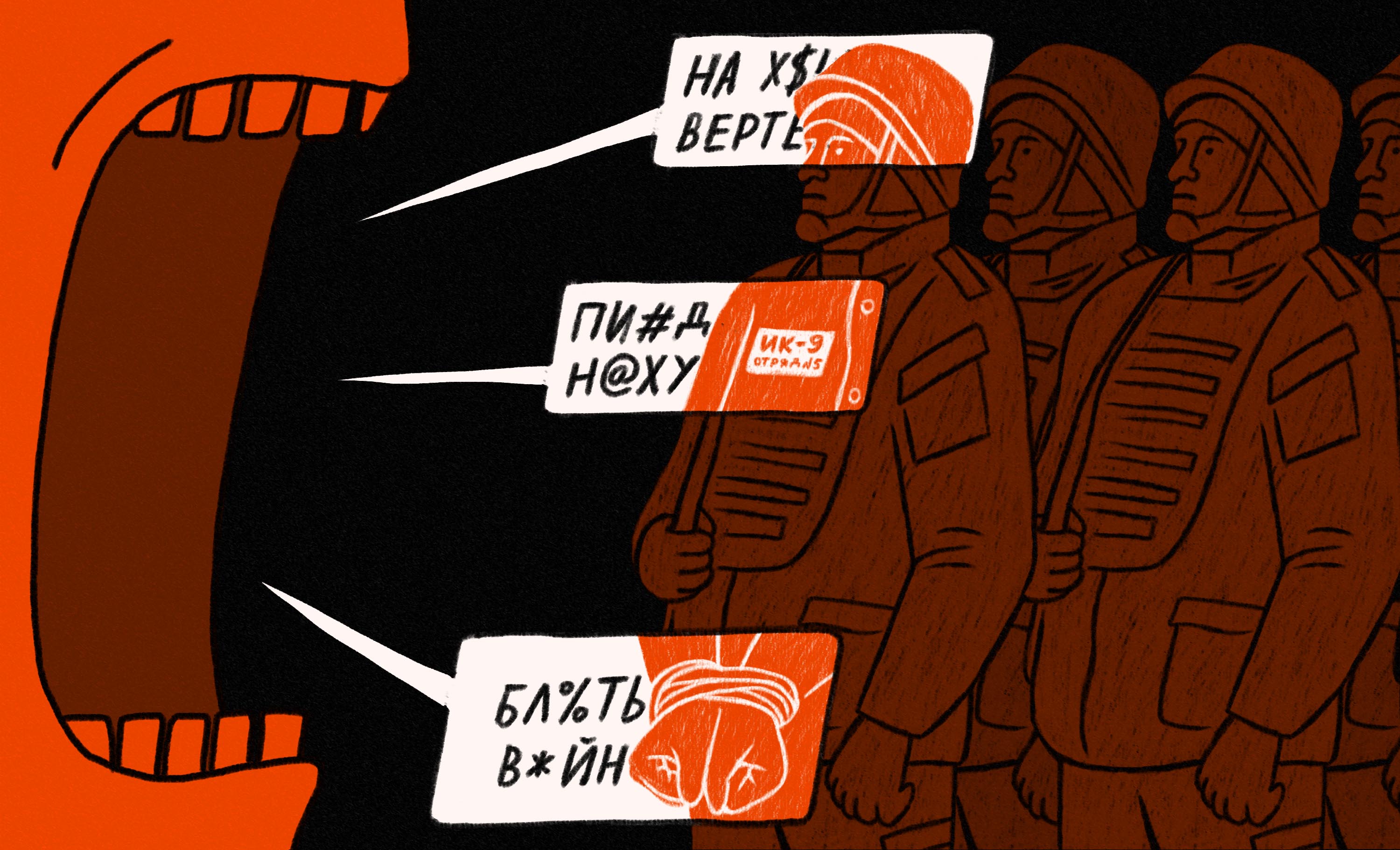 На записи этого командир называет Редькина, которого еще недавно хвалил за смелость, «подлецом», «трусливым существом», «козлиной», «сволочью» и «тварью». «Че ты, нахуй, губки свои кривишь?» — спрашивает он после долгого потока оскорблений.