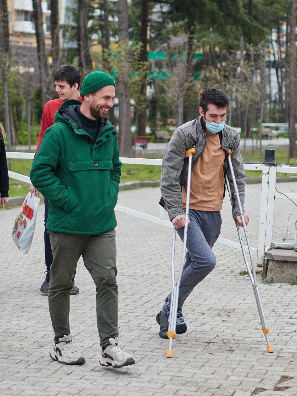 В госпитале мы провели около трех недель. Брату оказали хорошую медицинскую помощь, ему достали осколки и зашили лицо. Мне и папе делали просто повязки, за остальной помощью сказали обращаться в более крупные города. Я связался со своими друзьями в Ростове и попросил найти клинику, в которой могли бы залечить мою ногу. Другу сказали, что принять меня могут только в обычной больнице, но она с таким ранением не справится. Тогда мы решили, что в Ростове делать нам нечего, и подумали, что можем поехать в Грузию. Через знакомых, которые уже туда попали, мы узнали, что там есть организация Volunteers Tbilisi, которая помогает беженцам. Мы написали им про свою ситуацию, они согласились нам помочь и сразу начали искать клинику.