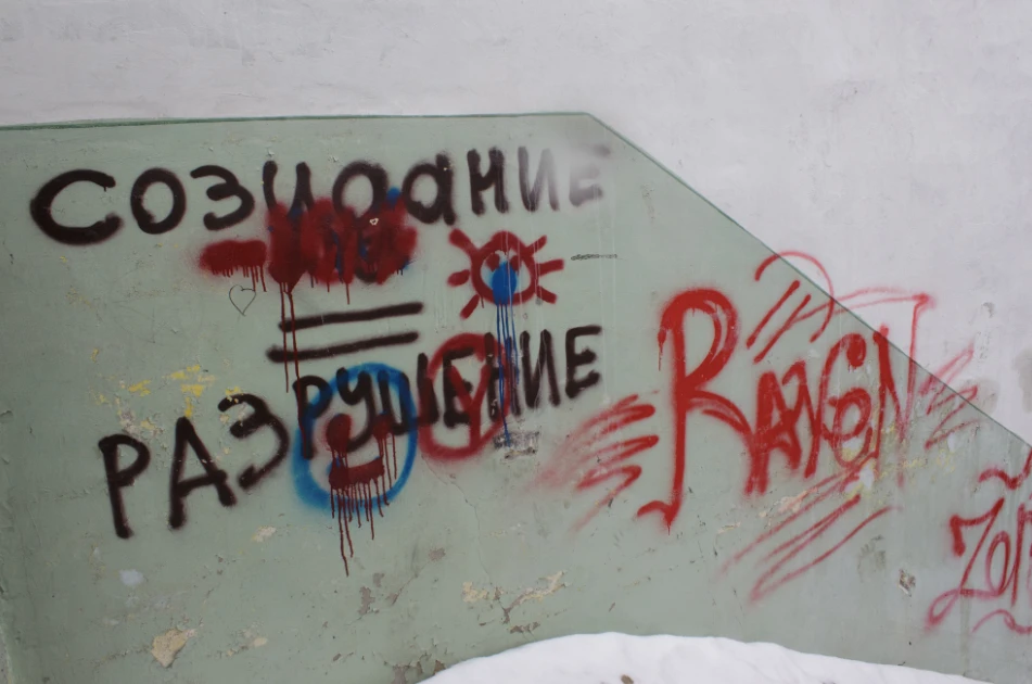 Сейчас здесь собираются любители экстремальных развлечений разной степени законности. На колоннах — метки уличных игр, реклама наркотических телеграм-каналов и даже номера телефонов с припиской «Досуг». В углах — следы костров, сложенные из остатков ящиков лежаки. Прятать оружие в таком оживленном месте не просто глупо — невозможно.