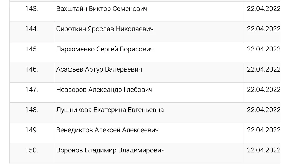 В списке также оказались социолог Виктор Вахштайн, ЛГБТ-активист Ярослав Сироткин, журналисты Сергей Пархоменко и Владимир Воронов, журналисты «Радио Свобода» Артур Асафьев и Екатерина Лушникова.