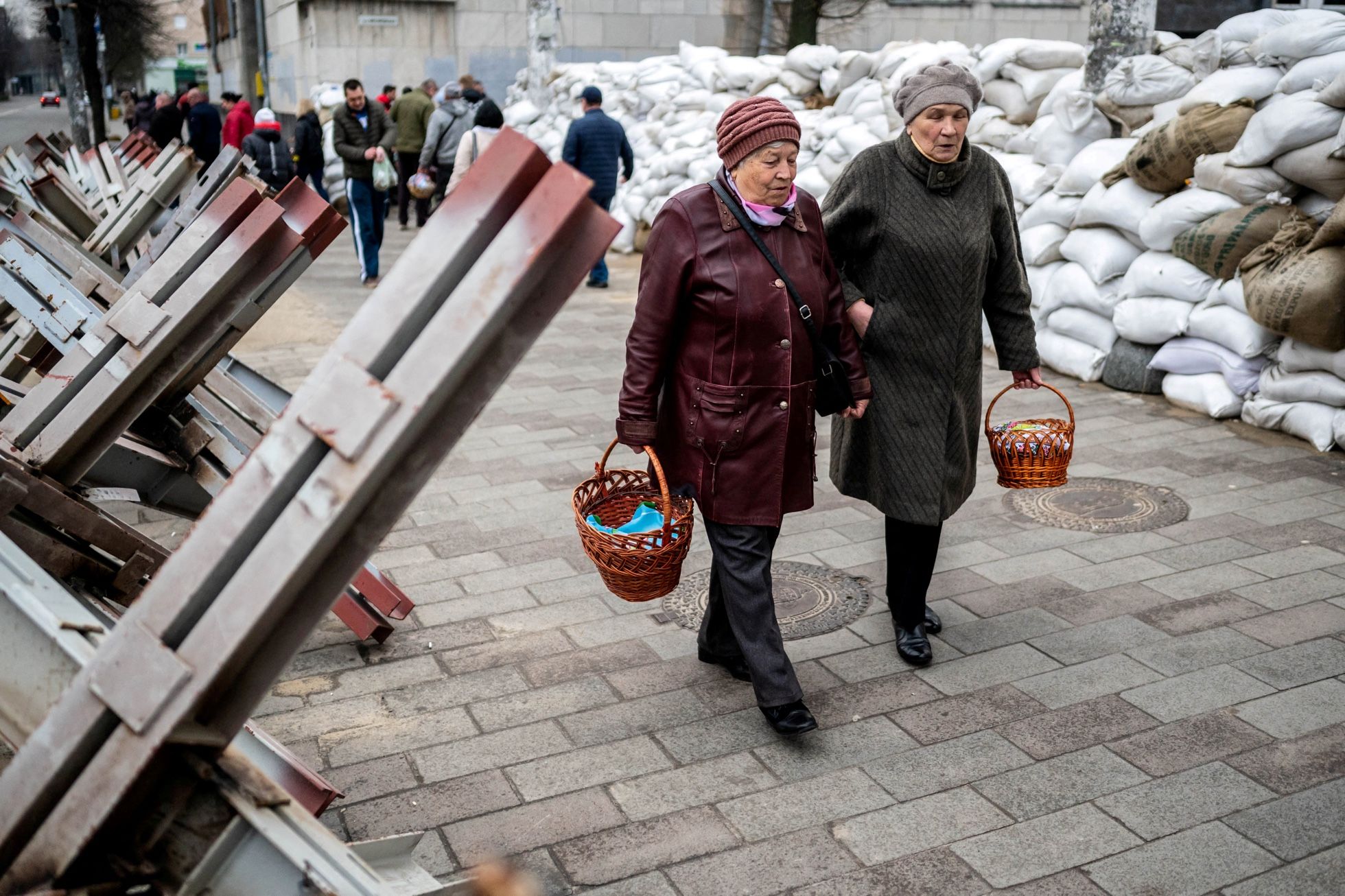 Жительницы Житомира несут освящать куличи и яйца на Пасху, 23 апреля