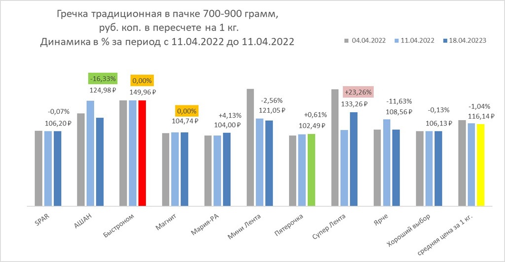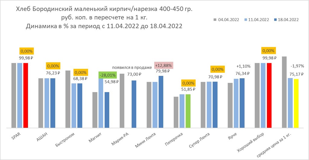 Мониторинг проводился 18 апреля в 20 торговых точках во всех районах города. Предыдущие два — 4 апреля и 11 апреля.
