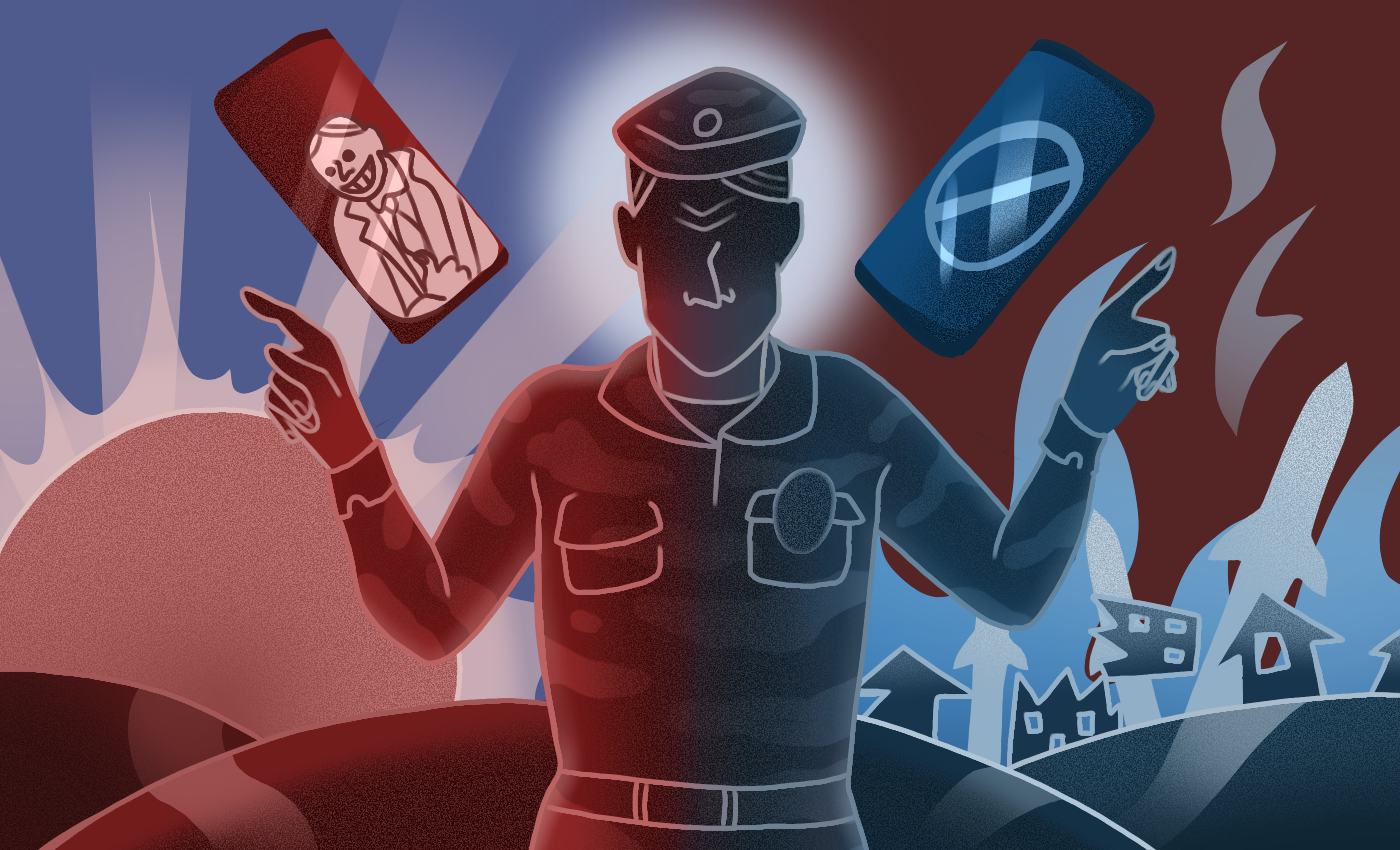 Мы дождались своей очереди. Русский пункт пропуска был жесткий: досмотр, личная беседа. Нас с братом завели в комнату допросов, мы сначала ждали часа три, пока дойдет очередь, потом нас вызвали, похожие [на те, что уже были в других местах] вопросы, но еще более детальные — чем занимаетесь, какая работа, что такое «наши», что такое «ваши», какое у вас отношение к этой ситуации? Такие вопросы, которые дают понять, что нельзя никаких радикальных высказываний. Часов по 4-5 допрос был у каждого, слава богу нас выпустили.