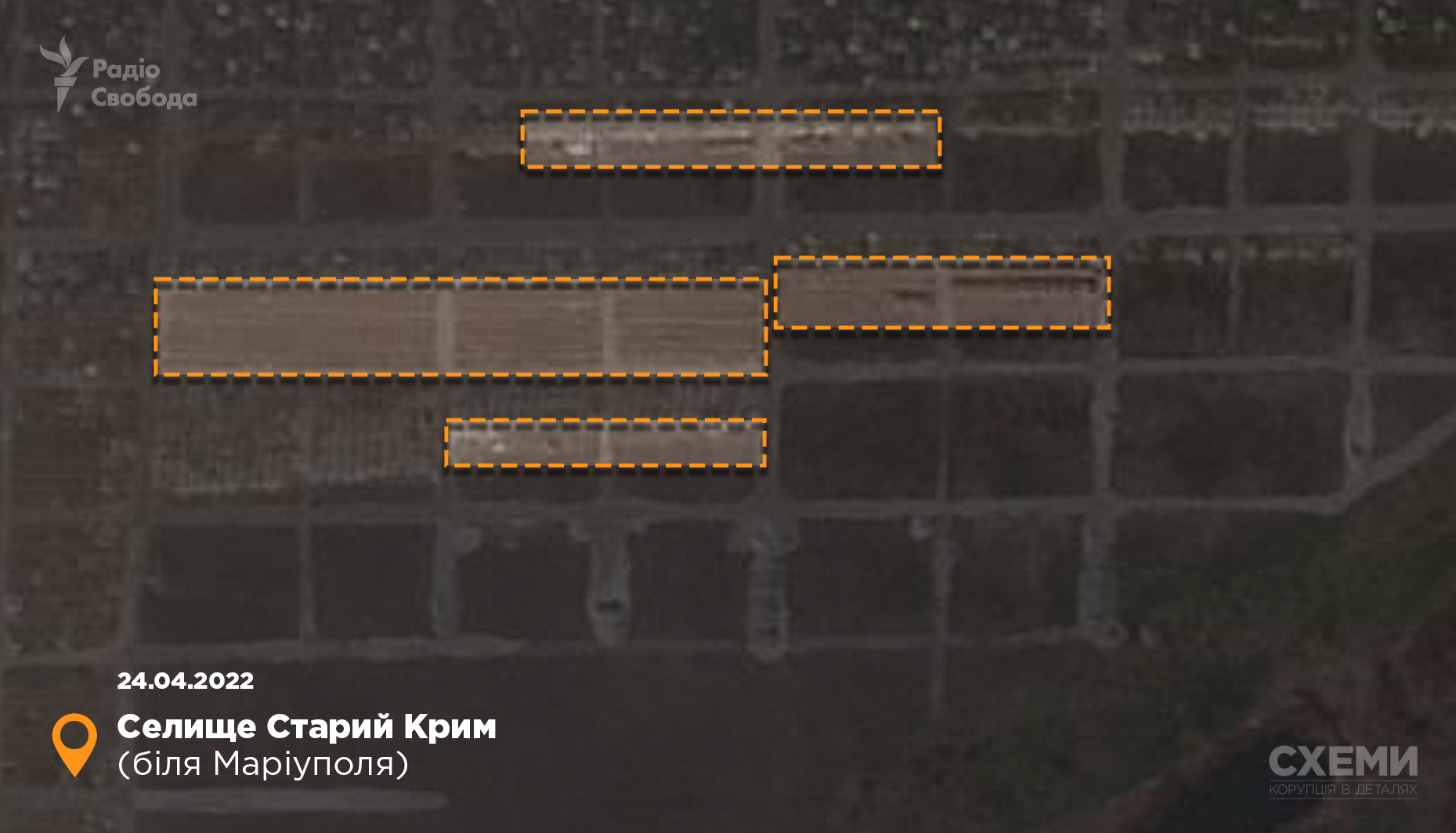 Ранее «Схемы» сообщали, что спутник зафиксировал два места массового захоронения вблизи Мариуполя: в Мангуше к западу от города и в селе Виноградное – к востоку.