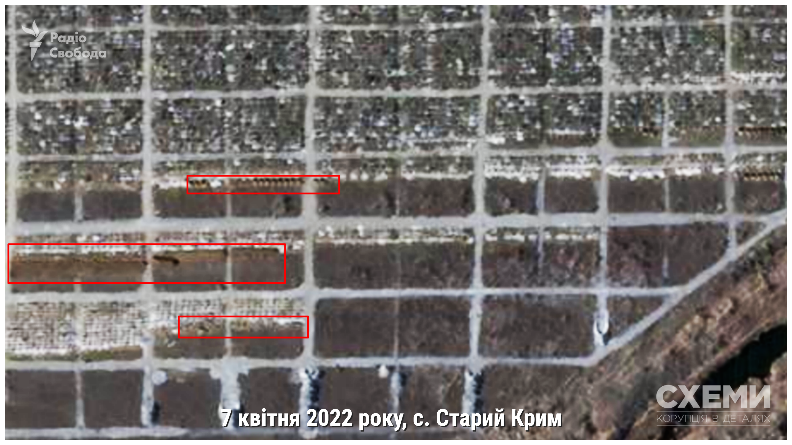 Спутник зафиксировал уже третье место массового захоронения вблизи Мариуполя. Выкопанные траншеи появились на территории кладбища захваченного российскими войсками поселка Старый Крым, расположенного в 5 км от города. Длина траншей достигает более 200 метров, сообщают «Схемы» (Радіо Свобода).