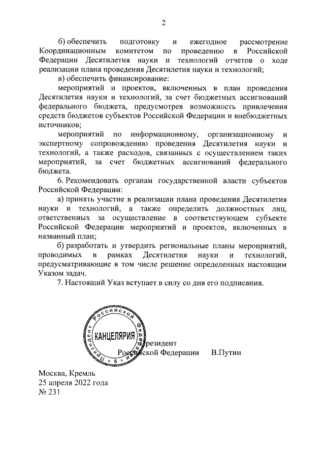 Для этого Путин создаст координационный комитет по проведению десятилетия науки и технологий. Его состав и уставные документы должны утвердить в ближайшие три месяца.
