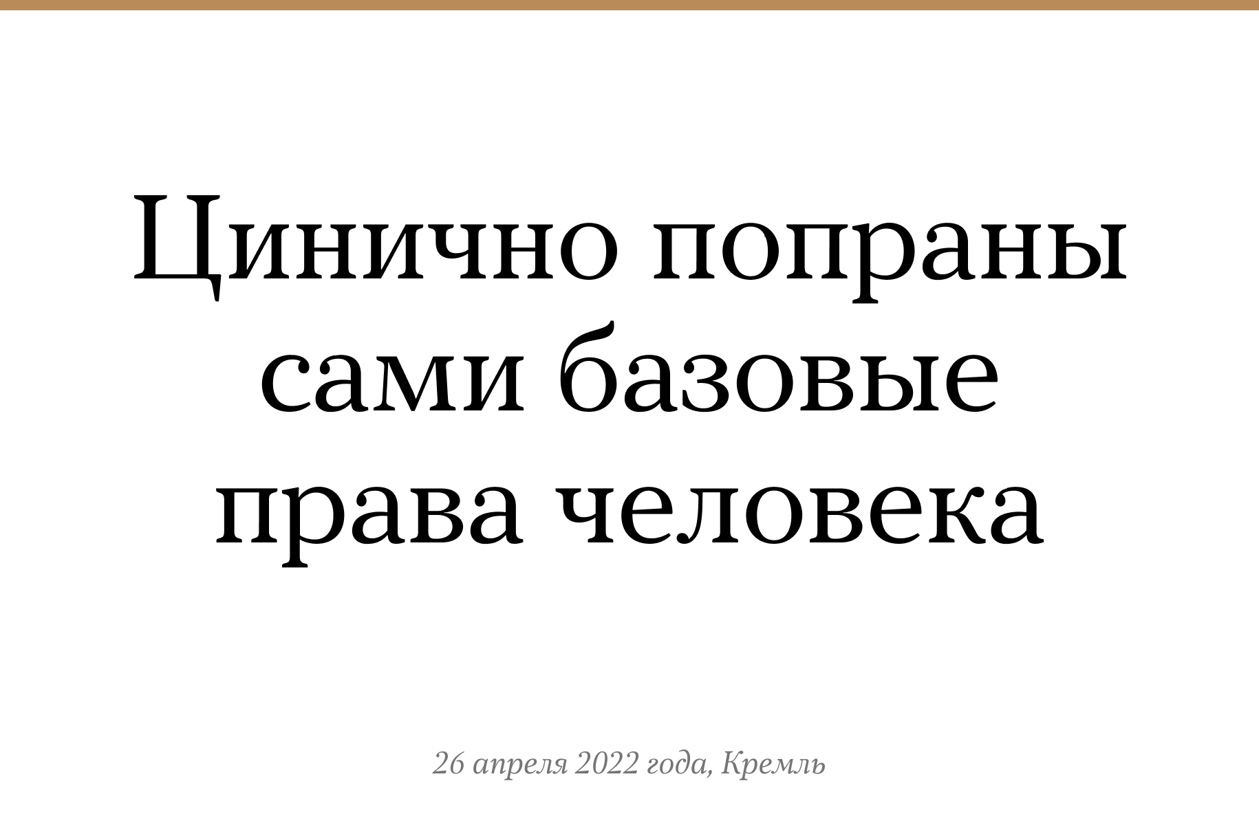 26 апреля президент России Владимир Путин встретился в Большом Кремлевском дворце с победителями и призерами Олимпиады-2022 в Пекине и участниками паралимпийской сборной России. В ходе своего выступления президент среди прочего прокомментировал решение Международного паралимпийского комитета, который в начале марта отстранил атлетов из России и Беларуси от Паралимпиады из-за войны в Украине. «Отстранение… не только прямо нарушило основополагающие принципы спорта — открыто и, не побоюсь этого слова, цинично были попраны сами базовые права человека», — заявил Путин. По его мнению, случившееся нарушает Всеобщую декларацию прав человека, принятую Генассамблеей ООН в 1948 году. «Наших атлетов подвергли дискриминации по сугубо политическим причинам, исходя из их гражданства и национальности», — заявил Путин.