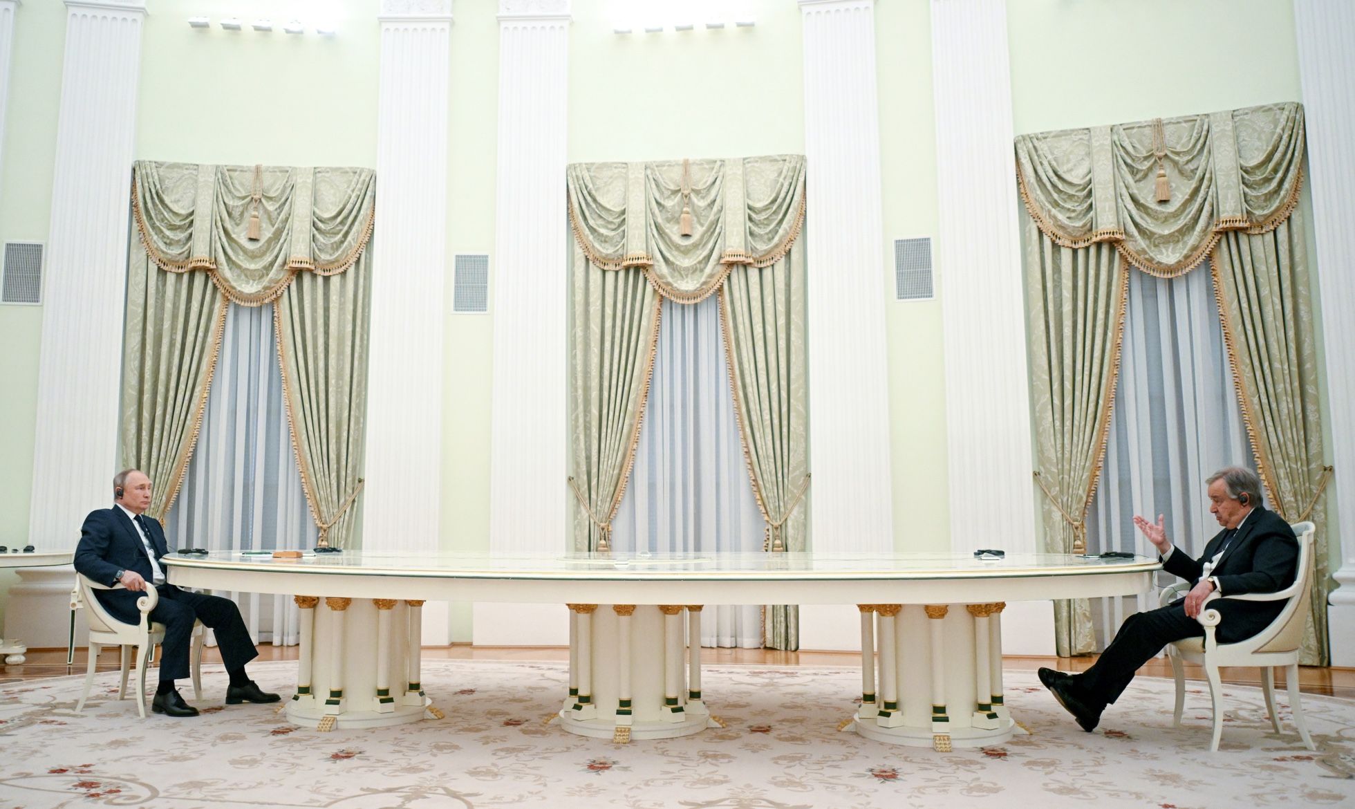 - Президент России Владимир Путин встретился с генсеком ООН Антониу Гутерришем (снова за длинным столом).