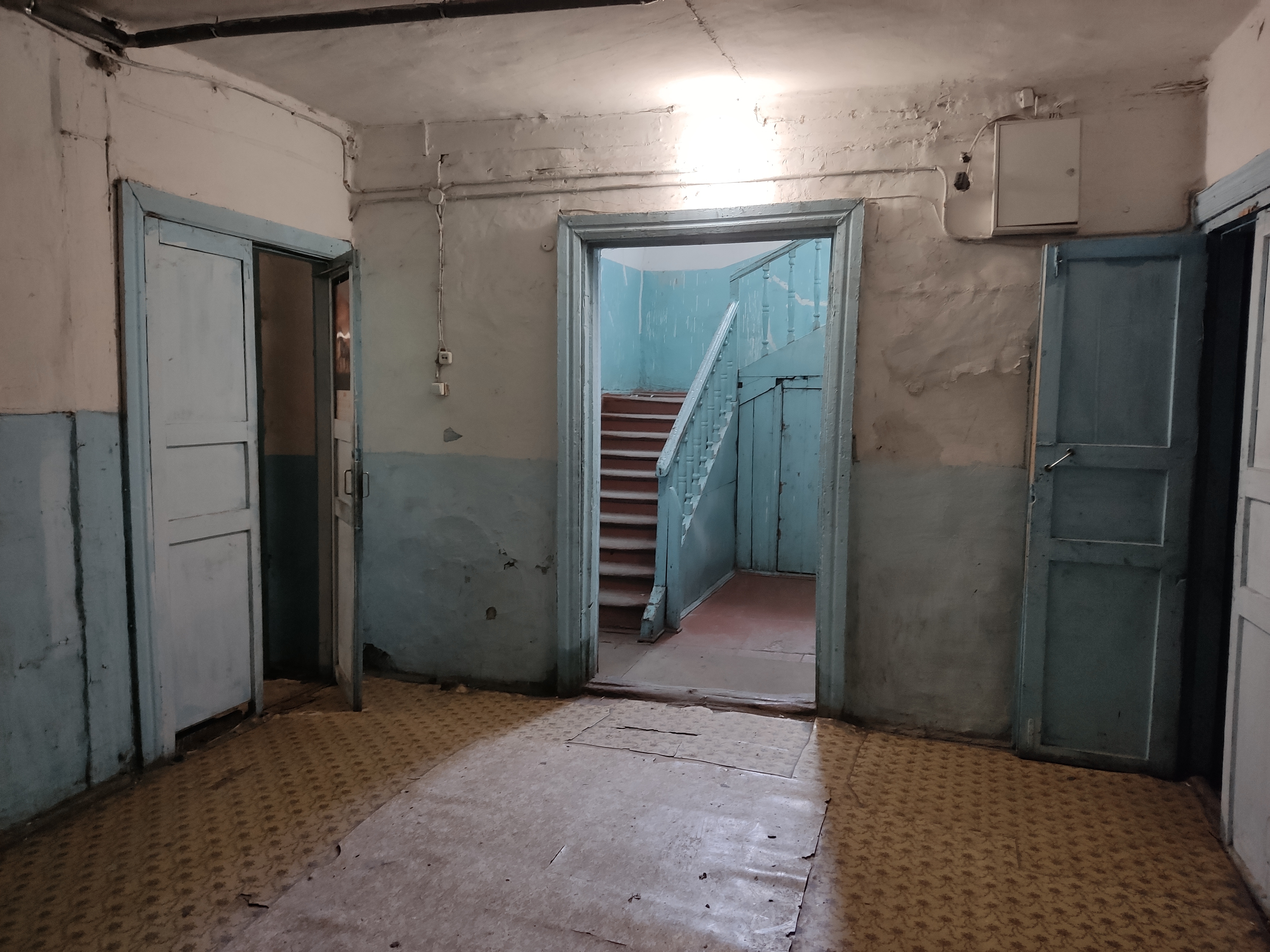 Всего в нем 18 квартир. Часть приватизированы, часть муниципальные, некоторые стоят пустые, какие-то сдаются. Горячей воды никогда не было, но ее можно получить, если слить из батареи отопления. Жители в свое время скинулись на выгребную яму – централизованной канализации здесь тоже нет. От ямы и основные проблемы дома – ЖЭУ вовремя не откачивает ее содержимое, которое заливает подвал и портит фундамент. Пол в коридоре первого этажа выгнулся и превратился в пригорок.