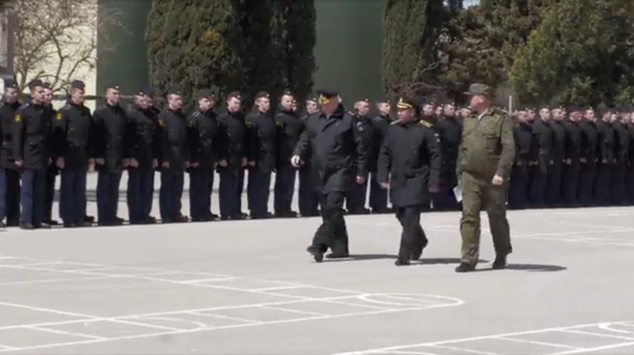 16 апреля, через два дня после катастрофы, в Севастополе прошла встреча экипажа с командующим ВМФ России Николаем Евменовым. На плацу журналисты насчитали около 100 человек. Запись этого построения опубликовало Минобороны, но в начале, когда обычно объявляется численность наличного состава, слов на видео не слышно.