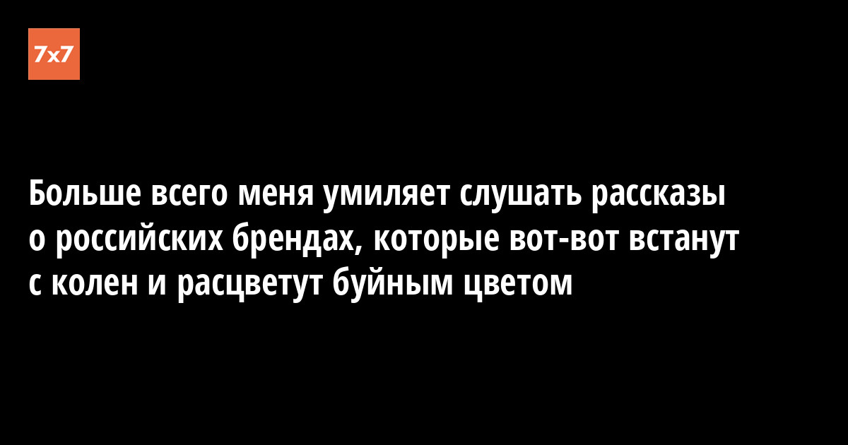 Больше всего меня умиляет слушать рассказы о российских брендах, которые вот-вот встанут с колен и расцветут буйным цветом