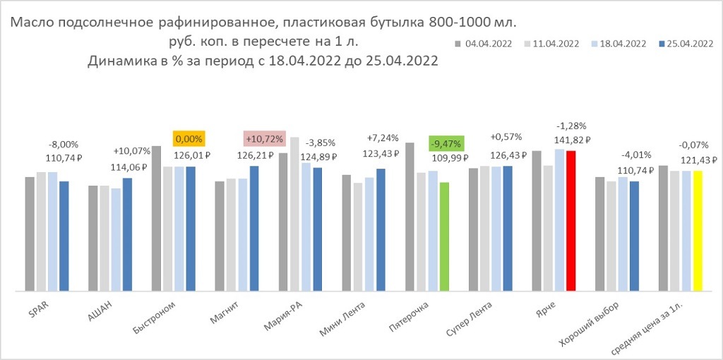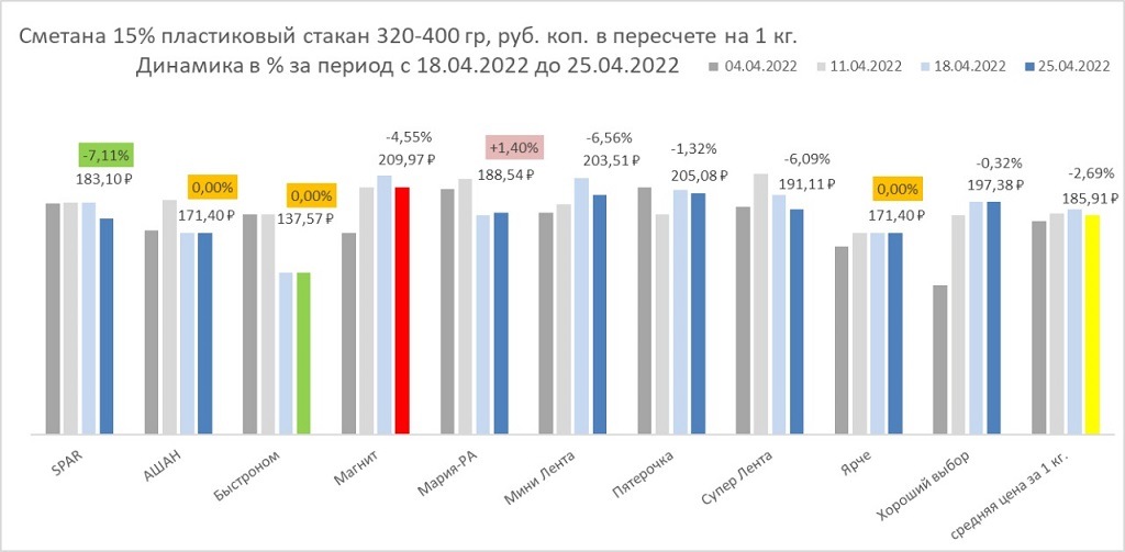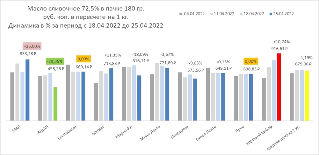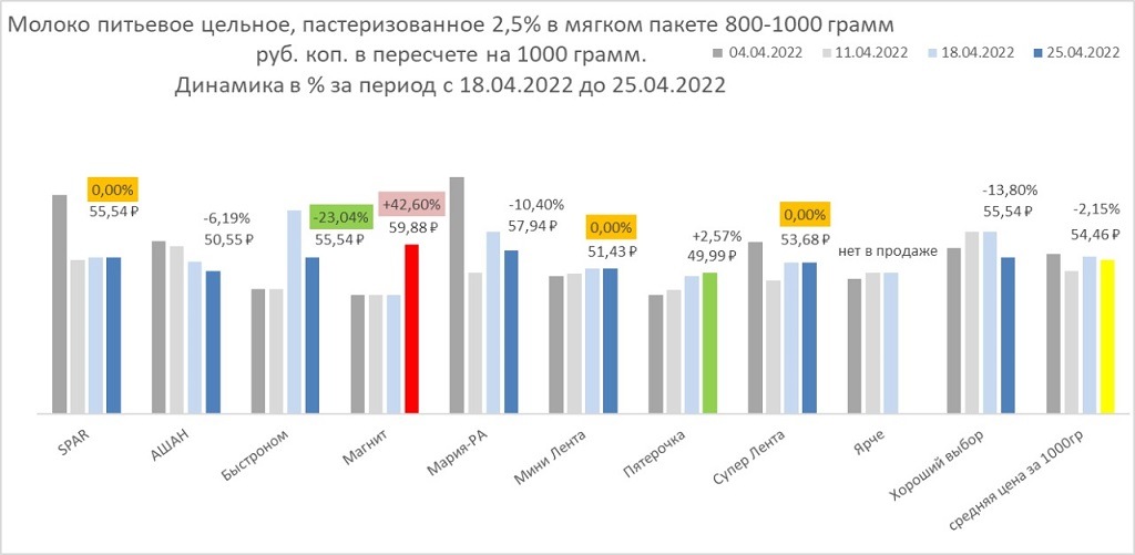 Мониторинг проводился 25 апреля апреля в 20 торговых точках во всех районах города. Предыдущие — 4, 11 и 18 апреля.