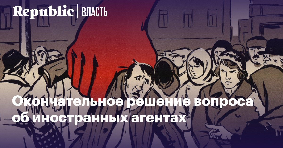 В понедельник, 25 апреля, в Госдуму был внесен проект нового федерального закона, разработанный комиссией Госдумы по расследованию фактов вмешательства иностранных государств во внутренние дела России. Название у него соответствующее: «О контроле за деятельностью лиц, находящихся под иностранным влиянием». Как будто все то страшное и стыдное, что, — как мы наивно думали, — навсегда из жизни ушло, взяло да и вернулось.