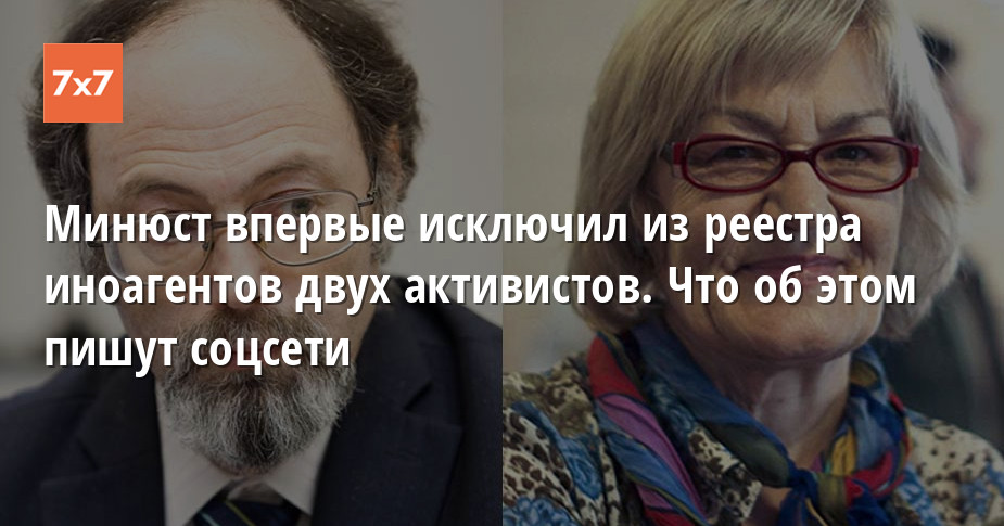 Минюст РФ впервые исключил из реестра СМИ-иноагентов сразу двух человек: эксперта движения «Голос» Аркадия Любарева и самарскую правозащитницу Людмилу Кузьмину. В ведомстве пояснили, что приняли решение, основываясь на заявлениях об исключении и поступивших документах от органов госвласти. Ранее суды признали законным включение Любарева и Кузьминой в список иноагентов. Что об их исключении из списка иноагентов пишут в соцсетях — в обзоре блогов «7х7».