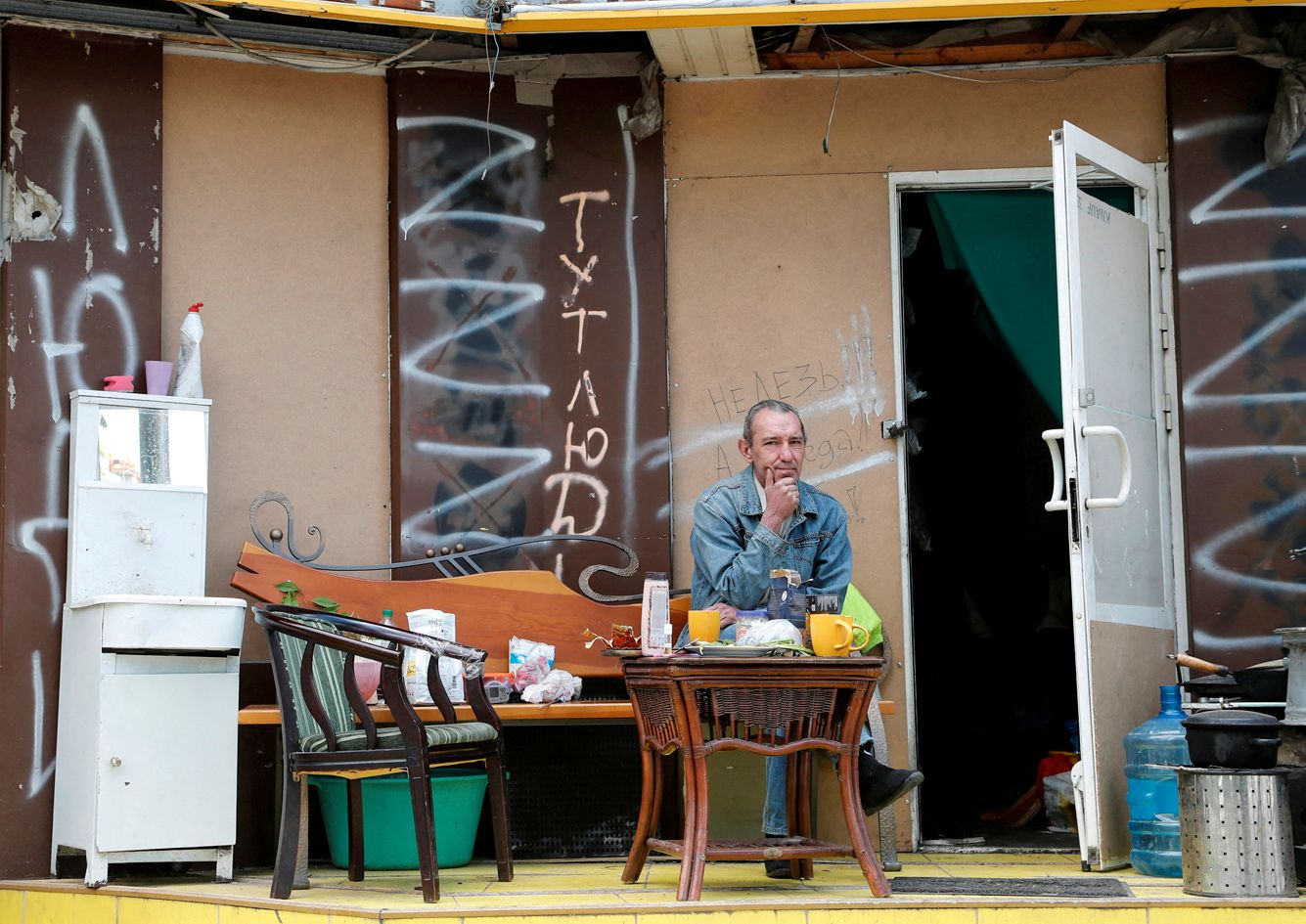 Sergei Ilnitsky / EPA / Scanpix / LETA Дым после обстрела над корпусами металлургического завода «Азовсталь». 21 апреля президент России Владимир Путин приказал отменить штурм промзоны, но территория заблокирована и остается под обстрелом. При этом на заводе укрываются не только военные, но и мирные жителиAlexander Ermochenko / Reuters / Scanpix / LETA Житель Мариуполя у поврежденного здания. Часть домашней мебели теперь на улицеSergei Ilnitsky / EPA / Scanpix / LETA Досмотр бойцами самопровозглашенной ДНР на выезде из Мариуполя