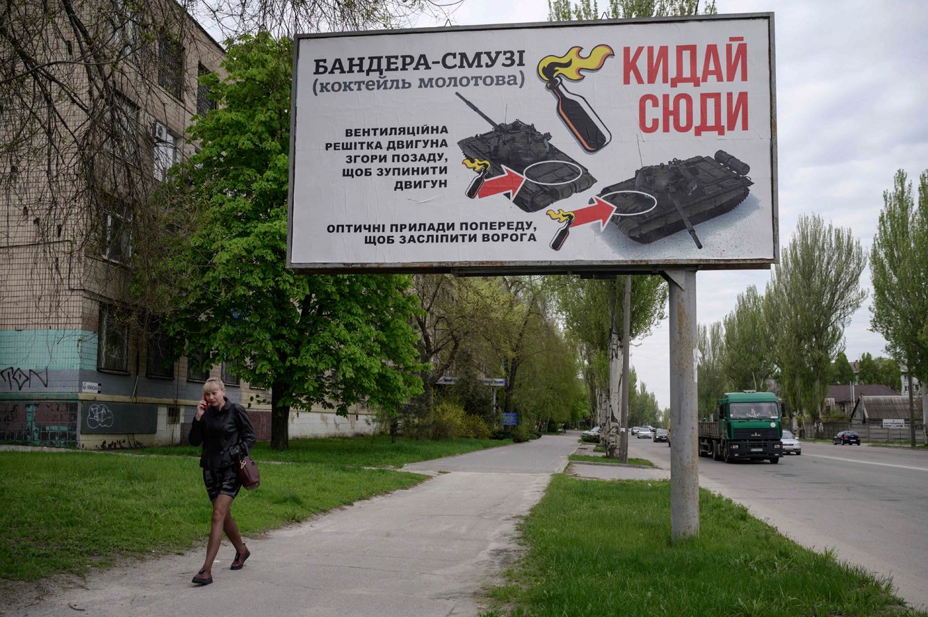 Chris McGrath / Getty Images Жители и сотрудники экстренных служб толкают поврежденный автомобильRoman Pilipey / EPA / Scanpix / LETA Местные жители убирают обломки разрушенного дома после российского ракетного обстрелаEd Jones / AFP / Scanpix / LETA Баннер, объясняющий как правильно кидать коктейль Молотова («бандера-смузi») в российский танкEd Jones / AFP / Scanpix / LETA Запорожье после обстрела. Снимок с воздуха