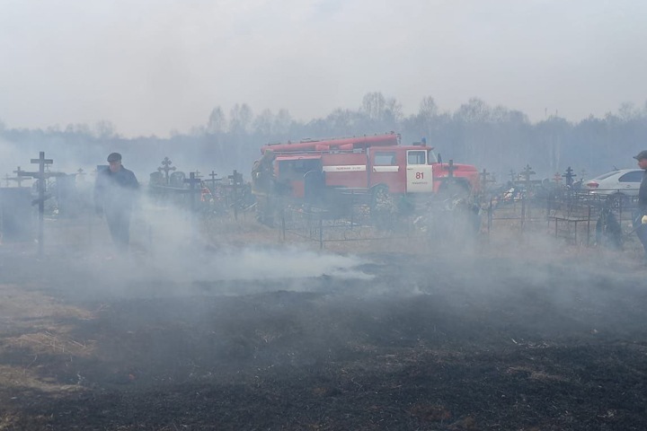 Огонь перекинулся на Дороховское кладбище в городе Назарово. Об этом сообщили в мэрии 1 мая.