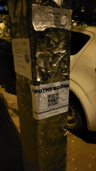 Периодически на различных рекламных поверхностях в Краснодаре и крае появляются объявления, приглашающие людей, несогласных с войной России против Украины, в Антивоенный Комитет Кубани. Такие объявления зачастую содержат мотивационный призыв «Против войны?» и QR-код, ведущий на соответствующий телеграм-канал.