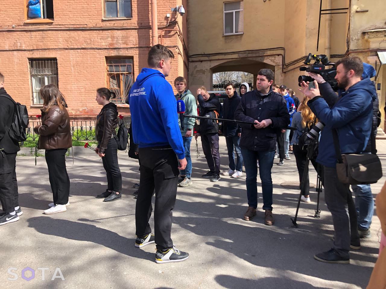 SOTA утверждает, что уже через час после съемок цветы, свечи и портреты убрали. Кто это сделал – неизвестно.