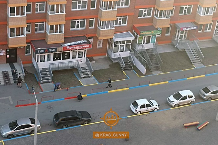 «УК покрасила бордюр в желтый и синий цвет, такие цвета не первый год используются для покраски бордюров, но вот в этом году они непопулярны на столько, что жители домов возмутились и потребовали перекрасить бордюры, — утверждается в паблике „Наш микрорайон Солнечный“. — В результате УК пришлось перекрашивать бордюры».