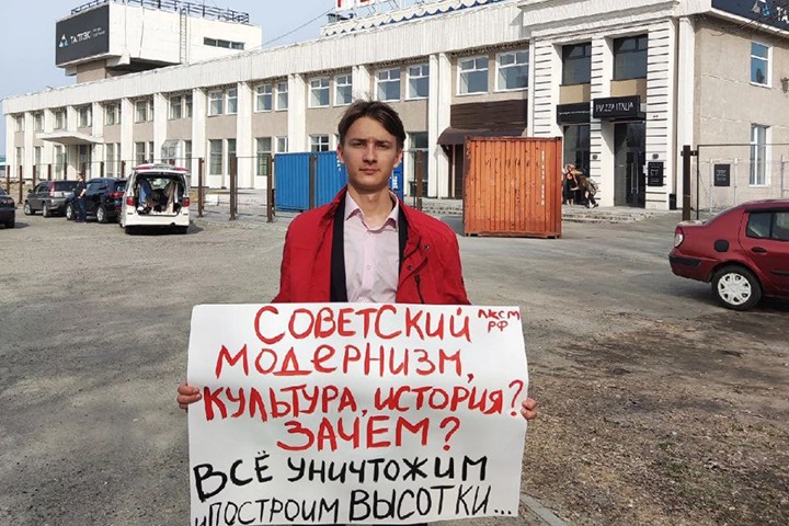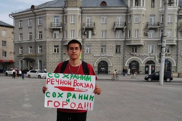 Комсомольцы провели одиночные пикеты за сохранение здания Речного вокзала. Об этом сообщили в крайкоме ЛКСМ 4 мая.