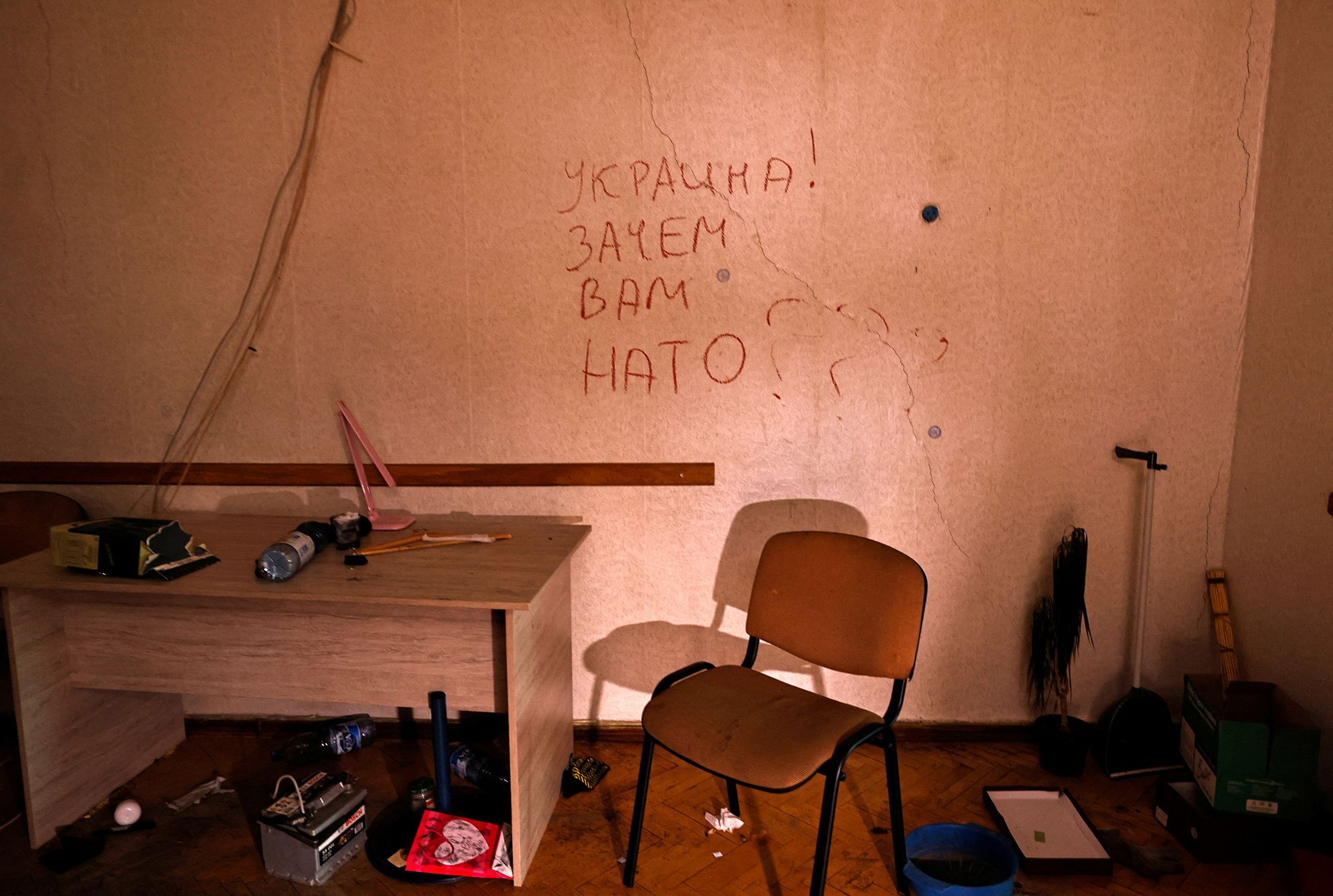 Zohra Bensemra / Reuters / Scanpix / LETA Надпись на стене внутри здания, которое российские военные использовали как штаб во время оккупации Бучи