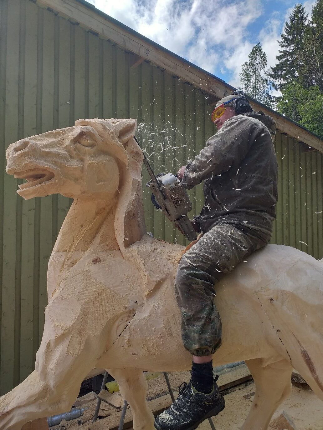 — С того дня, как я покинул редакцию, у меня нет ощущения, что я хотя бы один день работал. Несмотря на то, что скульптура — это физически непросто и иногда я не выпускаю бензопилу из рук по семнадцать часов в сутки, у меня нет ощущения, что я работаю. Находясь рядом с деревом, с теплым материалом, я испытываю настоящее чувство жизни. В этом плане я, наверное, очень счастливый человек, потому что у меня не осталось вопроса, зачем я живу. Я просто все силы отдаю делу, которое выбрал.