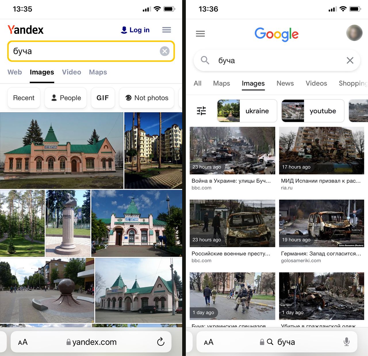 На решение Стыскина, рассказывают собеседники «Медузы» в компании, повлияла резонансная история, случившаяся из-за Бучи. Несмотря на новости о массовых убийствах в украинском городе, которые потрясли весь мир, поисковый сервис некоторое время выдавал по запросу «Буча» изображения туристических достопримечательностей. «В картинках приоритет недавно опубликованных изображений для прямых запросов про топонимы низкий, так как по прямым запросам пользователям обычно нужны базовые изображения городов», — оправдывалась пресс-служба «Яндекса».