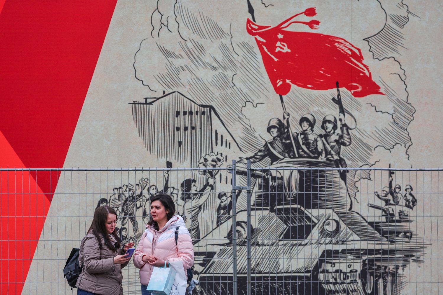 На фоне продолжающейся войны в Украине Кремль начал активно использовать советские символы. Так, на параде Победы 9 мая военная техника пройдет по Красной площади именно под красными флагами (вместо флагов воинских соединений). А в российских городах появляются памятники, плакаты и граффити, посвященные «бабушке с советским флагом» — украинской пенсионерке, которая, согласно получившему известность ролику, вышла с советским знаменем навстречу украинским солдатам, перепутав их с россиянами, и отказалась принять у них продукты после того, как те потоптали флаг.