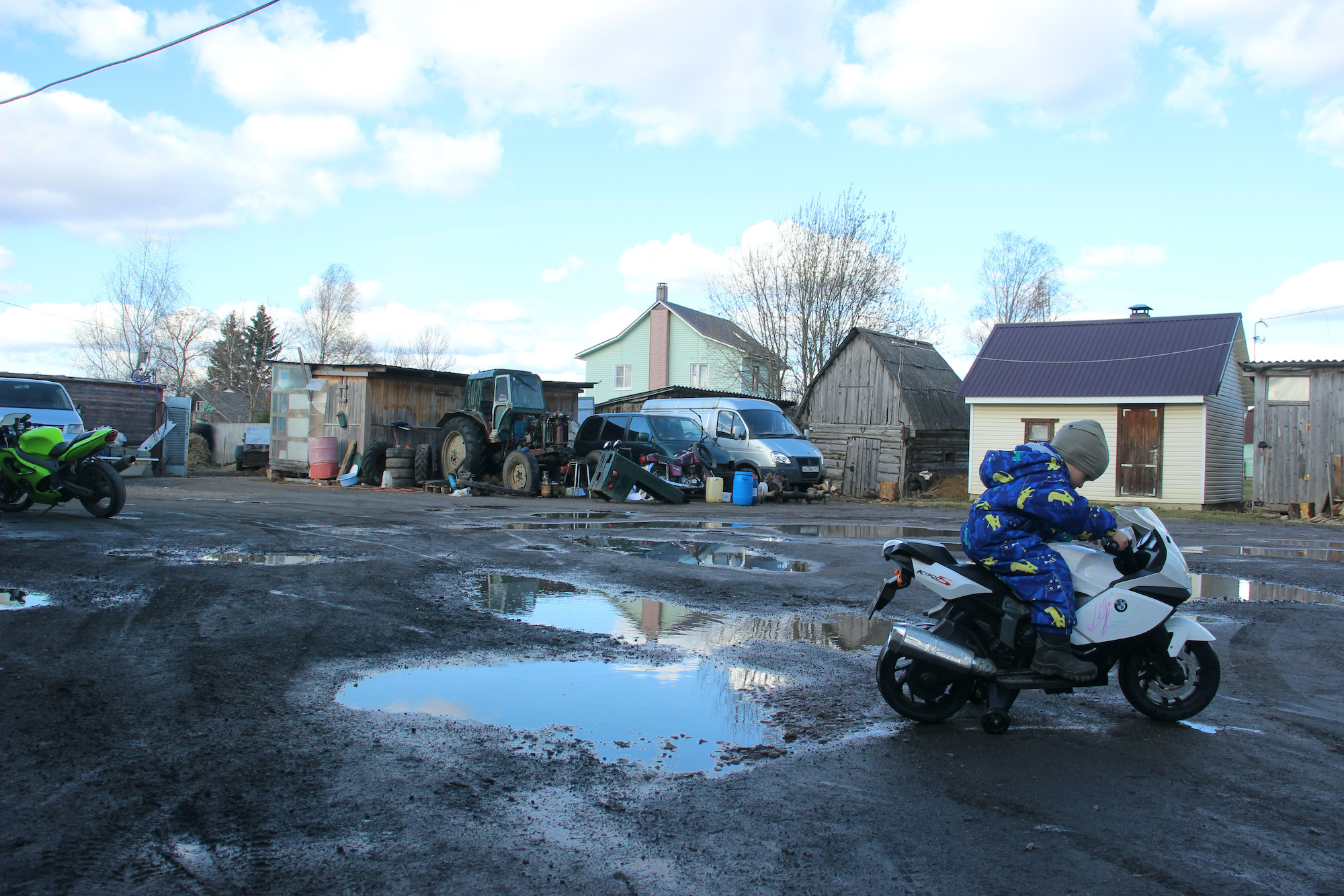 Во дворе многоквартирного дома все заставлено ремонтируемым автотранспортом. Местный житель Иван выливает из кружки остатки кофе и соглашается побеседовать без фото.