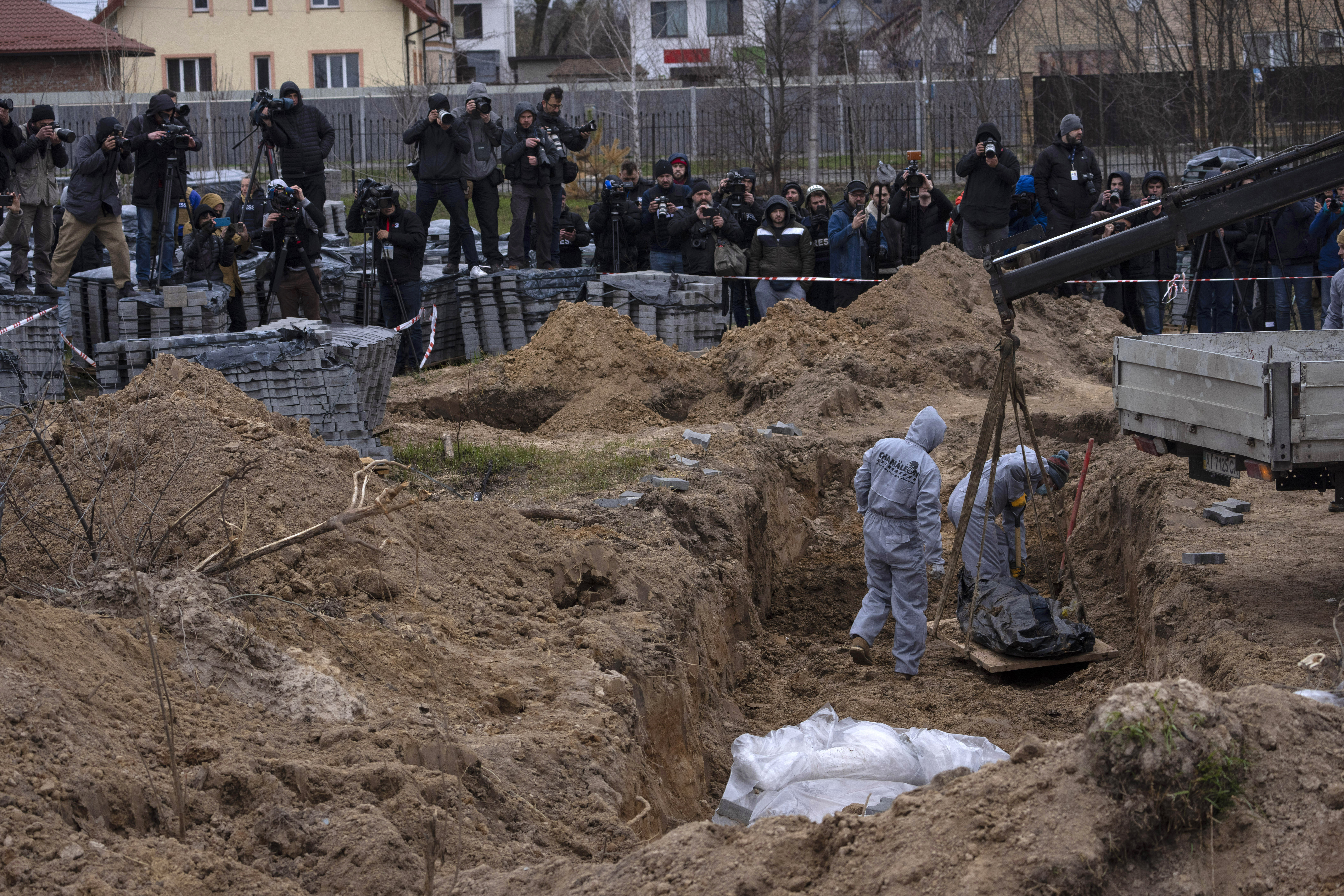 - В начале апреля после того, как из Бучи ушли российские войска, украинские власти и журналисты сообщили о множестве тел погибших на улицах города, а также о братской могиле с десятками захороненных. В том числе были найдены и убитые со связанными руками. Жители погибли во время пребывания в Буче российских войск. Власти Украины и стран Запада обвинили российских военнослужащих в военных преступлениях, в оценках событий в Буче звучит и слово "геноцид".