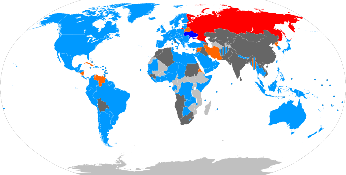 Когда 2 марта 2022 года Генассамблея ООН одобрила резолюцию с осуждением российского вооруженного вторжения в Украину и призывом к Москве о немедленном выводе войск с украинской территории, за проголосовало 141 государство – из 193 членов ООН. Лишь 5 стран высказались против этого документа, 35 – воздержались. Помимо самой России текст резолюции не поддержали лишь Беларусь, Сирия, КНДР и Эритрея. При этом в голосовании участвовали не все члены ООН, из них часть была лишена такого права (по причине просроченных платежей).