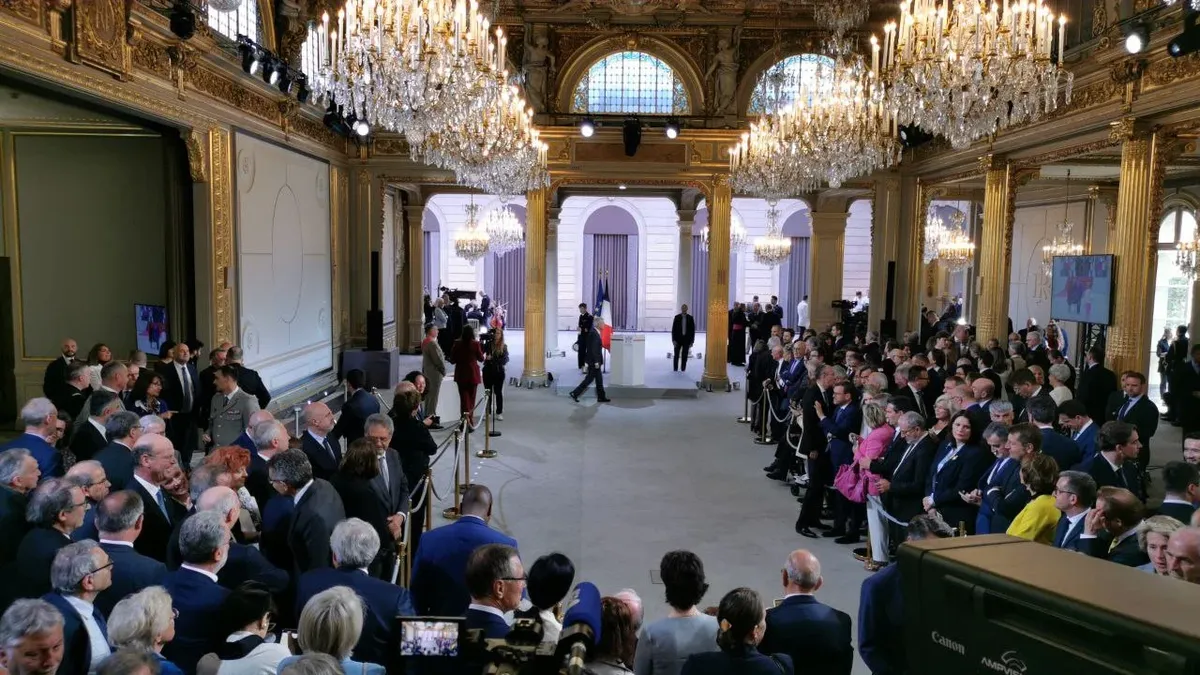 Инаугурация дважды президента Французской республики началась без опозданий, в начале двенадцатого, и продлилась час. В Праздничном зале было примерно 500 человек — премьер Кастекс и министры, экс-президенты Саркози и Олланд, председатель Конституционного совета Фабиус, члены семьи и друзья Макрона, спикеры обеих палат парламента, бизнесмены, спортсмены, представители религиозных культов, лидеры неправительственных организаций и профсоюзов, журналисты.