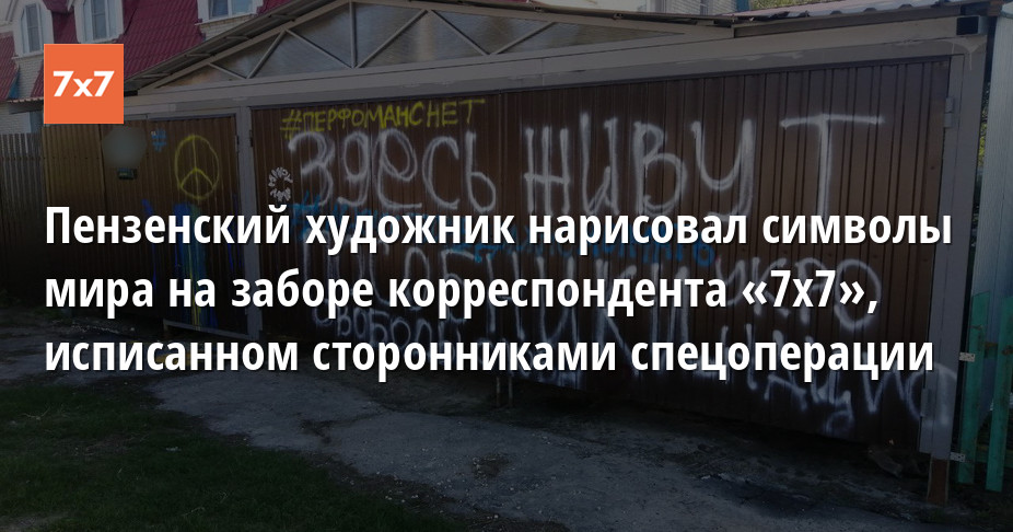Пензенский художник Владимир Кузнецов 7 мая изобразил символы мира на воротах дома корреспондента «7x7» Евгения Малышева и его жены Екатерины, журналистки издания «Такие дела». 27 апреля неизвестные написали на их воротах «Здесь живут пособники укронацистов» и нарисовали Z на машине. Кузнецов заменил надпись на «Здесь живут пособники свободы слова».