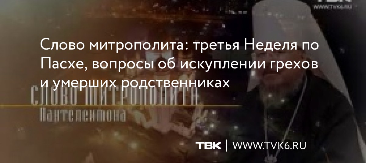 Слово митрополита: третья Неделя по Пасхе, вопросы об искуплении грехов и умерших родственниках