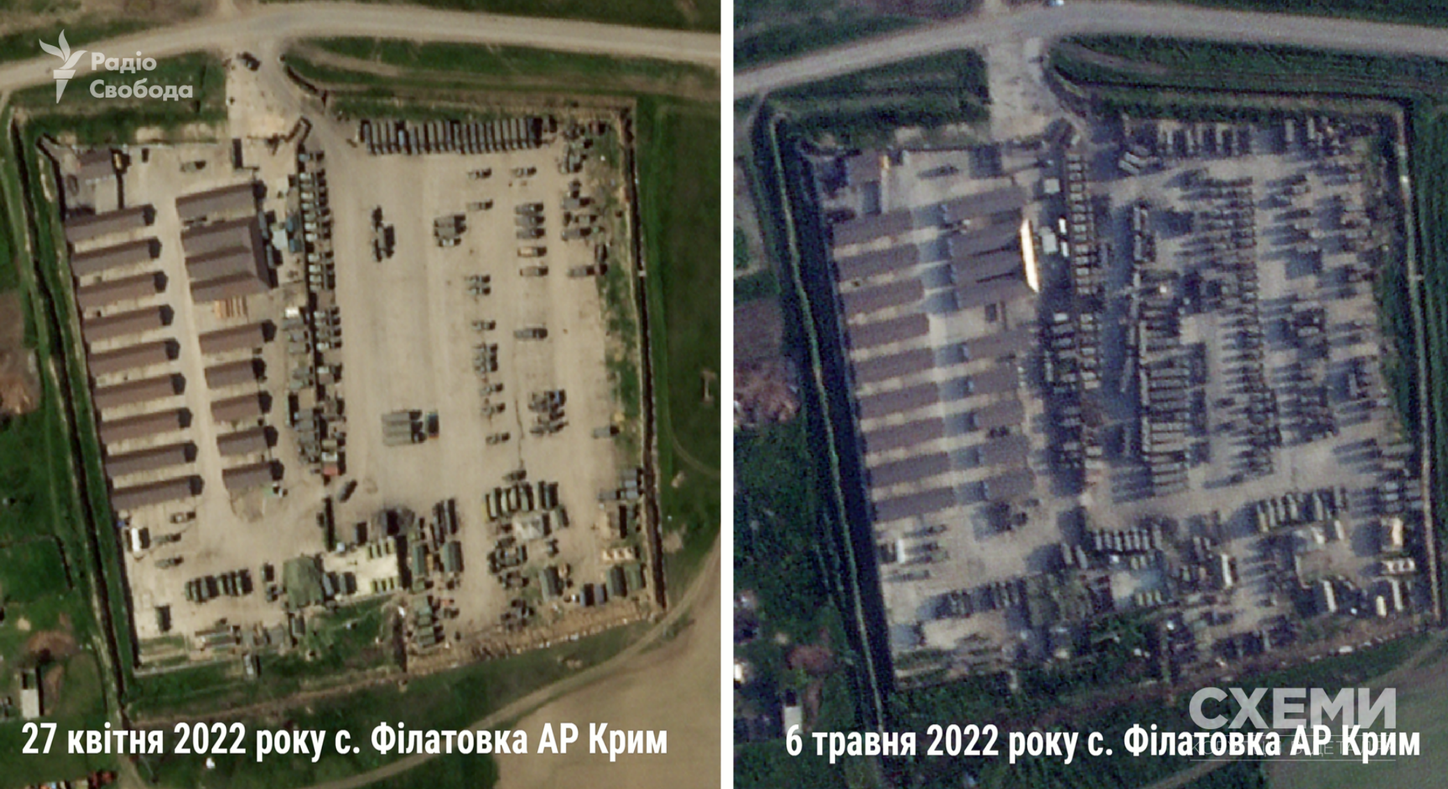 Спутник зафиксировал стягивание зенитно-ракетных сил армии РФ на север оккупированного Крыма – в село Филатовка, расположенное вблизи Херсонской области. На снимках, которые есть в распоряжении журналистов «Схем» (Радіо Свобода), заметно увеличение количества российской военной техники, среди которой – зенитные и ракетные комплексы.