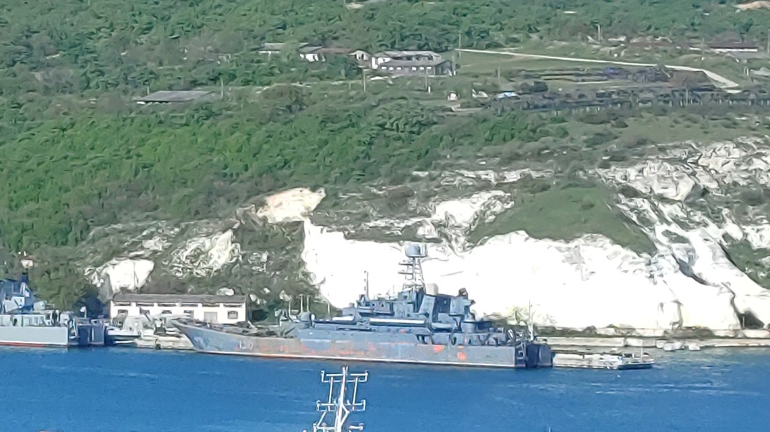 В Сухарной бухте в настоящее время стоят два больших десантных корабля проекта 775. Один из них, предположительно, «Цезарь Куников»