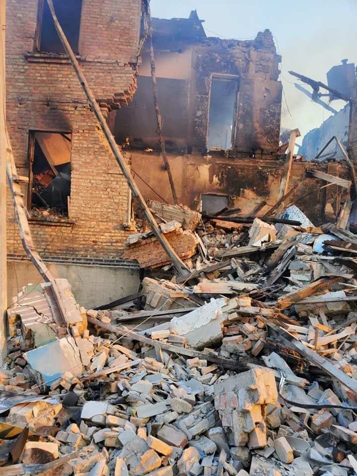 The strike occurred at 4:37 p.m. on May 7. It caused a fire, which took the next four hours to extinguish, according to Haidai. That evening, the Ukrainian State Emergency Service reported that two people had been found dead.