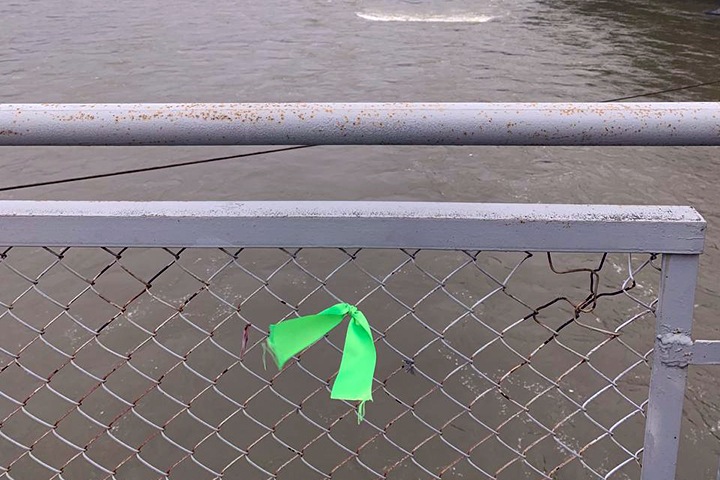 09:59 Зеленую ленточку заметили в Горном Алтае на мосту через Катунь. Фото от читателя.