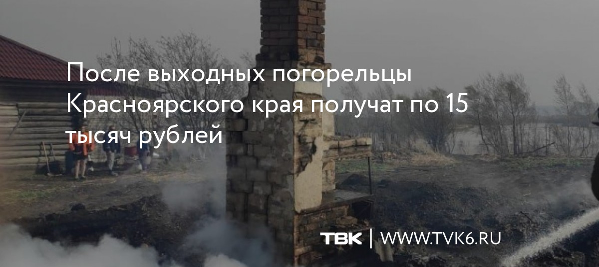 После выходных погорельцы Красноярского края получат по 15 тысяч рублей