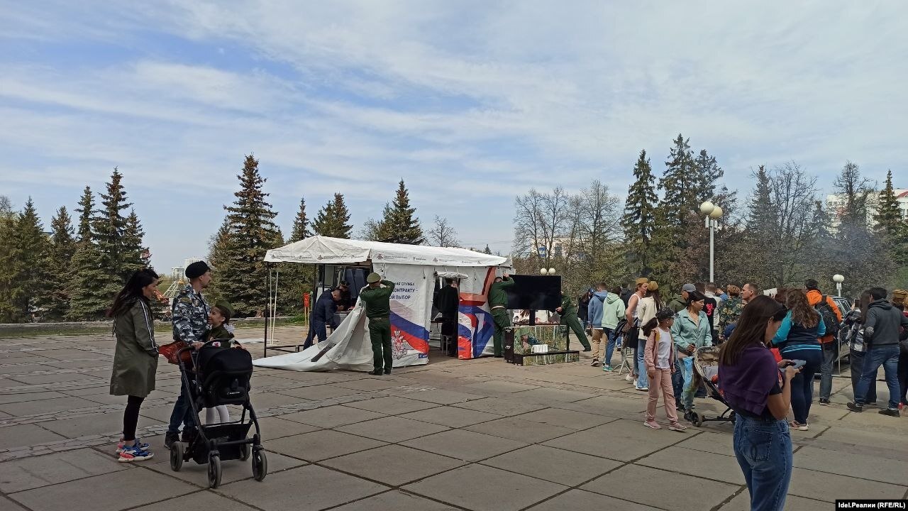 В День Победы в Уфе организовали пункт призыва граждан на военную службу по контракту.