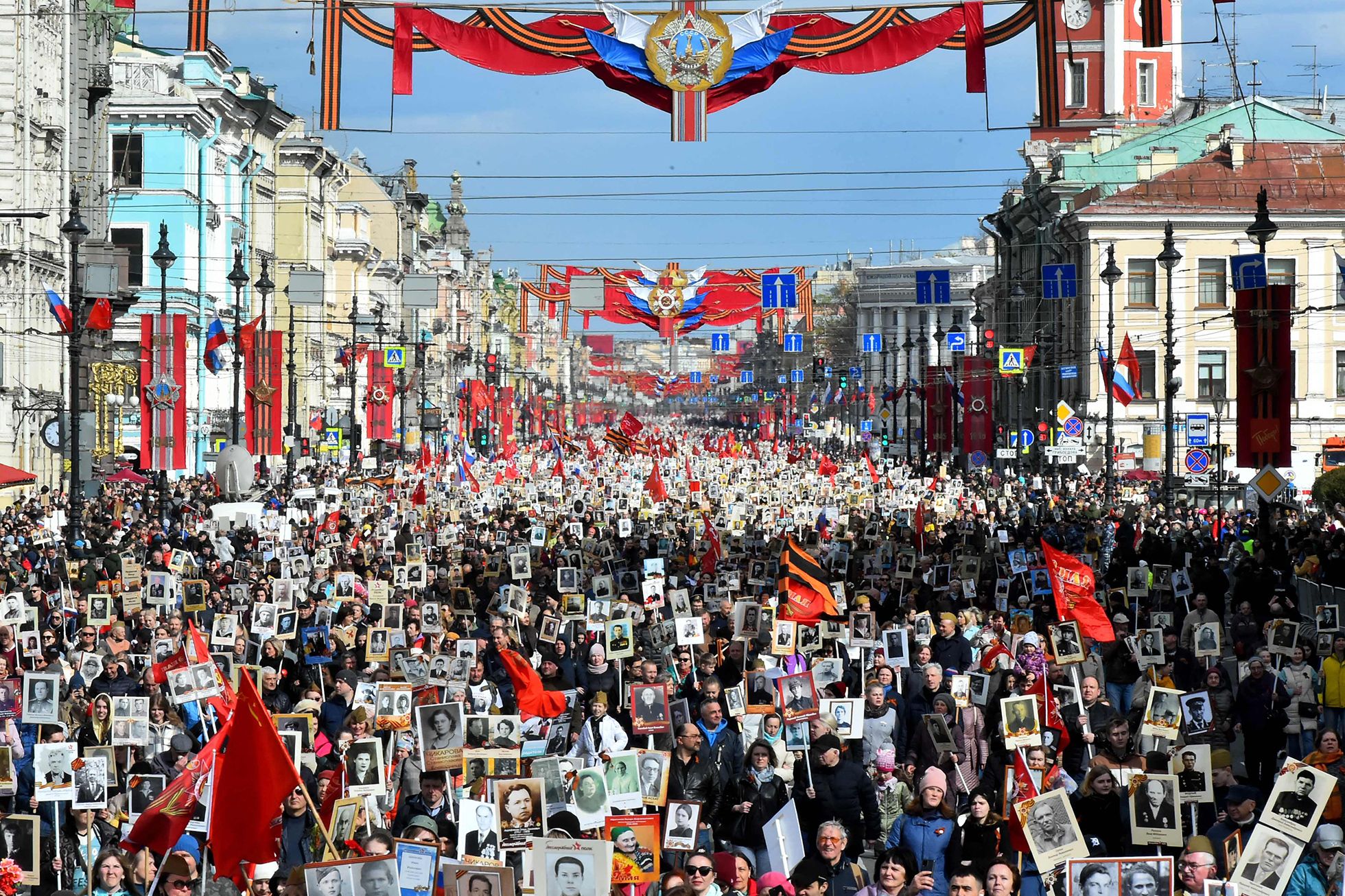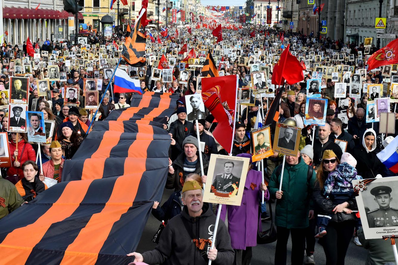 В пресс-службе Смольного сообщали, что в шествии приняло участие более миллиона человек (население Санкт-Петербурга — около 5,6 миллиона человек, Ленинградской области — 1,9 миллиона). Почти в самом начале колонны шел мужчина с флагом СССР на длинной палке: по его мнению, этот флаг 9 мая должен быть «выше остальных». Мужчина считал, что «Россия всегда воевала против фашизма», и в этот день он хочет поддержать страну и ее армию. «Если где-то в мире зарождается фашизм, его надо уничтожить», — был убежден мужчина.