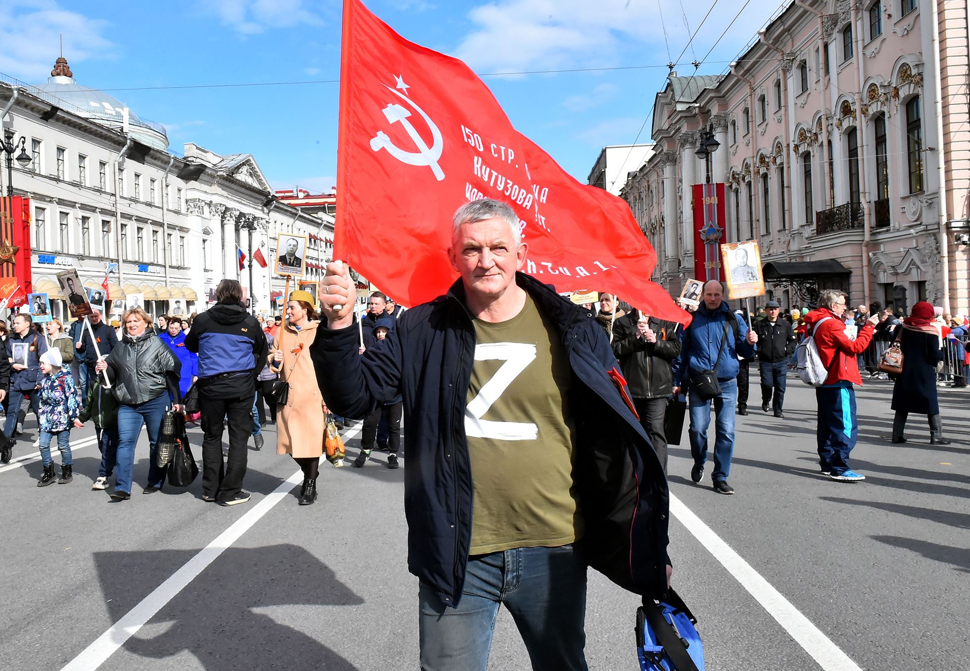 Петербуржец Аркадий пришел на «Бессмертный полк» с портретом своего деда, который встретил 9 мая в Берлине. На задней стороне плаката Аркадия были нарисованы символы Z и V. Мужчина объяснил, что, по его мнению, сейчас россияне «должны сплотиться против общего врага — Соединенных Штатов, которые хотят ослабить Россию».