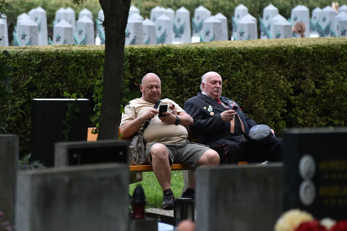 На Ольшанском кладбище в Праге захоронены более 400 красноармейцев — их могилы ровными рядами обелисков окружают памятник солдату с винтовкой. 8 мая память бойцов Красной армии и героев Пражского восстания почтил президент Чехии Милош Земан. Посол Украины растянул там же украинский флаг и заявил о «важности победы над рашизмом». 9 мая на то же кладбище пришли русские и чехи, которые поддерживают в нынешней войне Россию, а журналист Илья Азар с ними поговорил.
